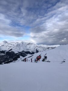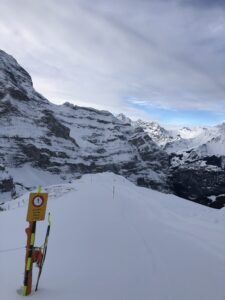 This years visit and Anthony was a little suprised at how large the drop actually was. The wind sculpting and snow quantities are similar to that of the season he skied off into fresh air! Can you tell where it is? Just above the start of Red 11 down to Tschuggen, not far from the top of Gummi on Skiers right after you have passed the piste coming down from the top of the Honegg Chair Lift.